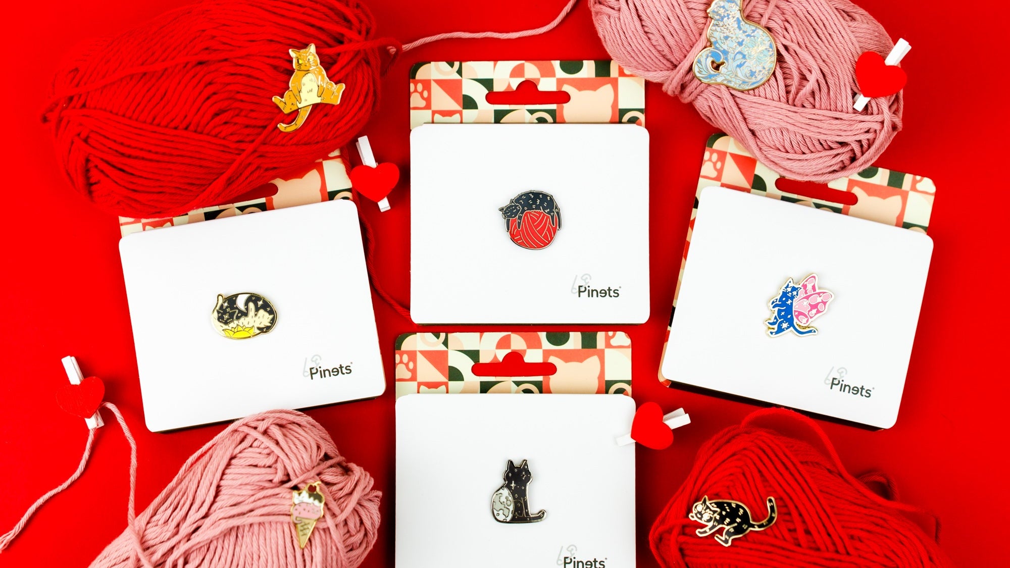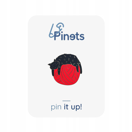 Przypinka Kot na kłębku czarny kot metalowy Pin