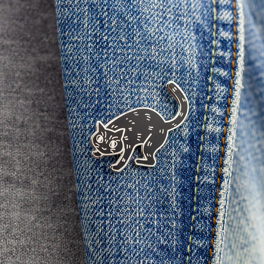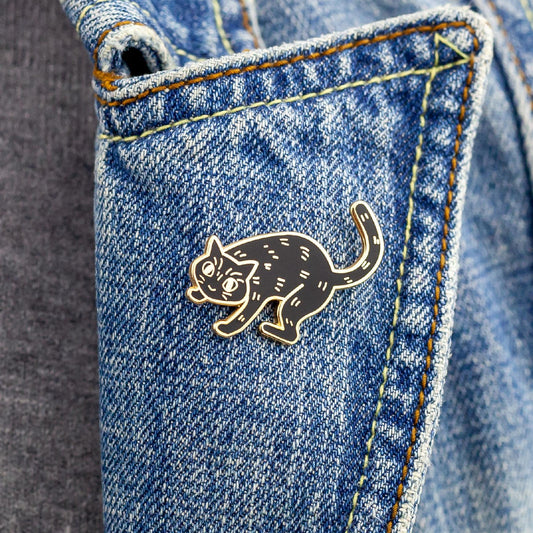 Kot czarny Bonifacy - przypinka z pozłacanymi konturami