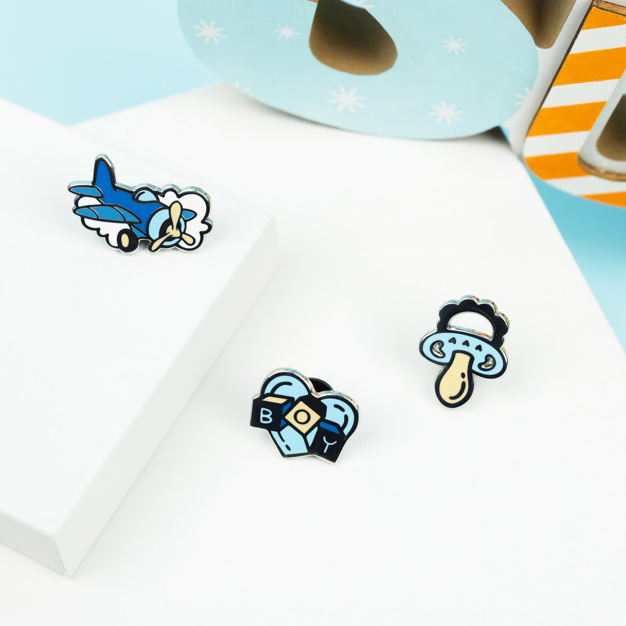 Przypinka samolot niebieski Pinets kolekcja Baby Shower / Gender Party