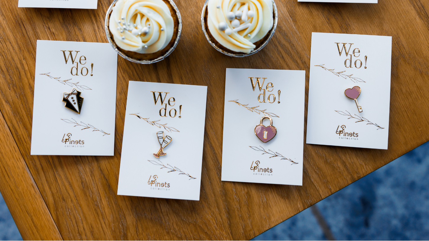 Przypinka ślubna - różowe serce na kluczu - prezent na ślub