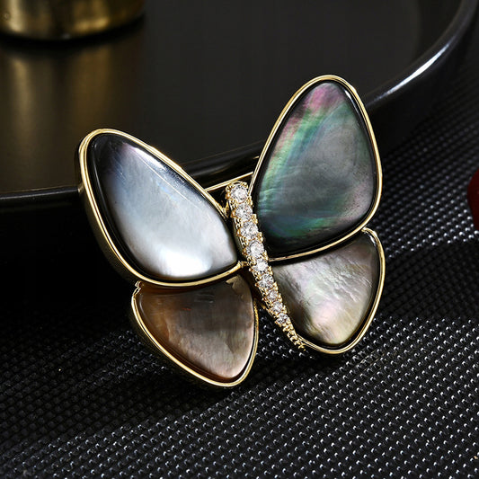 Motylek wypełniony masą perłową - pozłacana broszka 14K