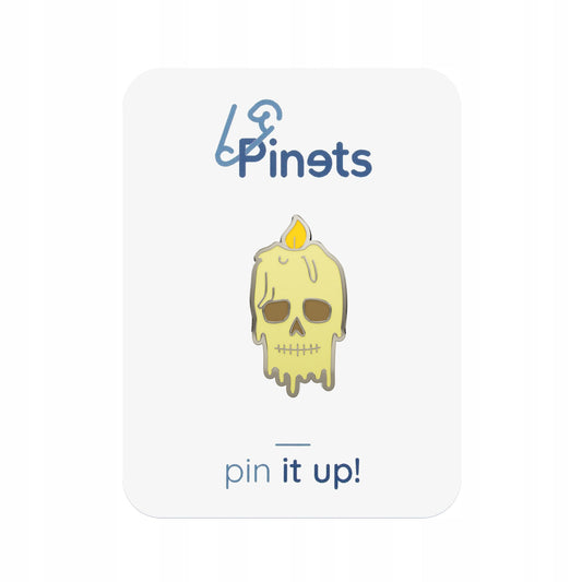 Czaszka przypinka Czacha świeca z płomieniem metalowy Pin