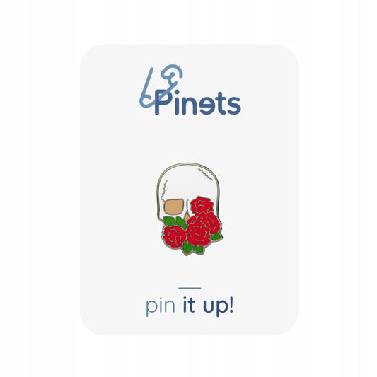 Czaszka przypinka Czacha z Kwiatami Różami Pin
