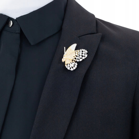 Czarująca Broszka MOTYL dwu kolorowy z cyrkoniami