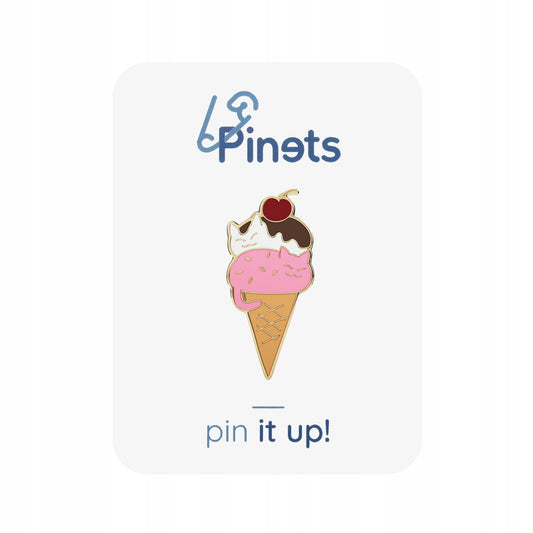 Przypinka pozłacana IceCat kotki w wafelku metalowy Pin
