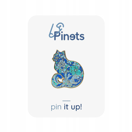 Przypinka pozłacana Błękitny kot metalowy Pin