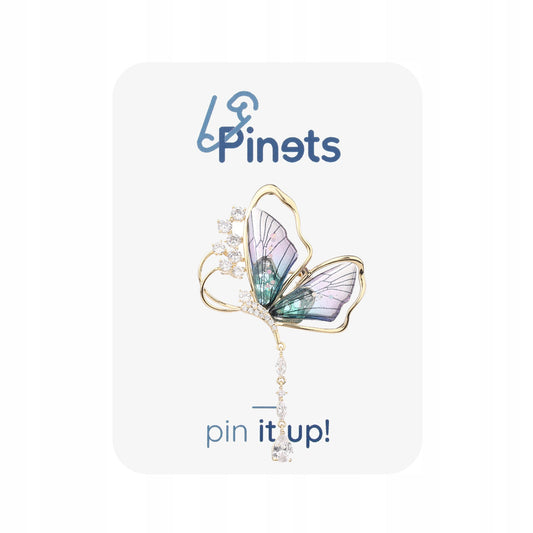 Efektowna Broszka MOTYL pozłacany z cyrkoniami akrylowymi skrzydłami