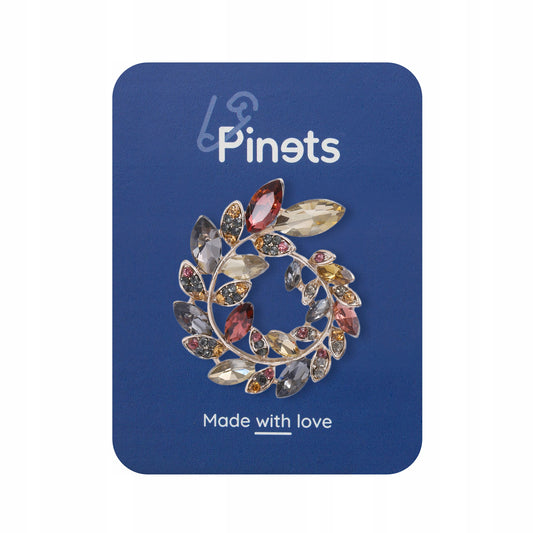 Wianek z listkami - broszka zdobiona cyrkoniami