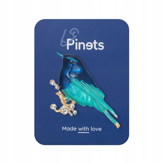 PINETS broszka Ptak niebieski Kwiatki Cyrkonie