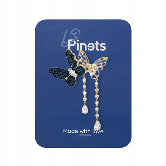 Motyle z łańcuszkami - broszka pozłacana 14K złotem