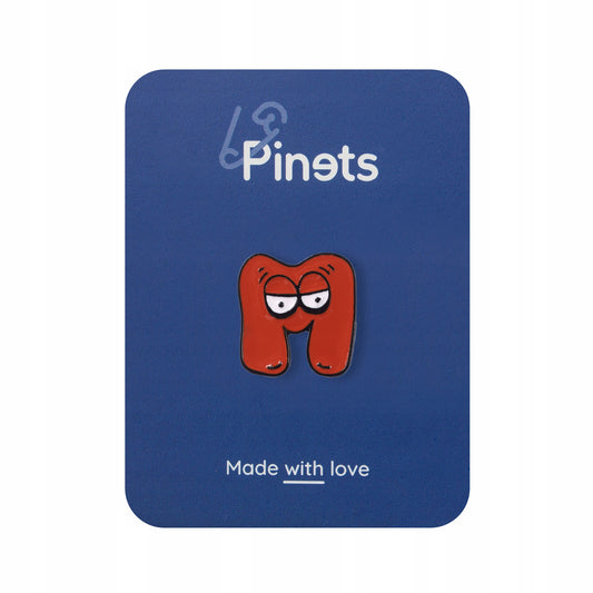 W promocjiLitera M z oczami - czerwona przypinka