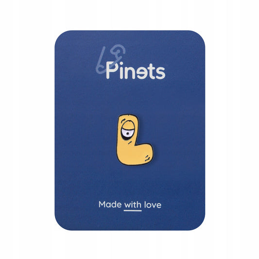W promocjiLitera L z okiem - ciemnożółta przypinka