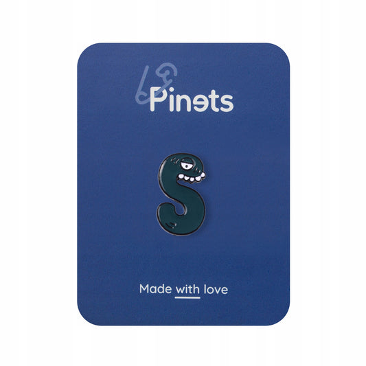 Litera S z okiem i zębami - ciemnozielona przypinka