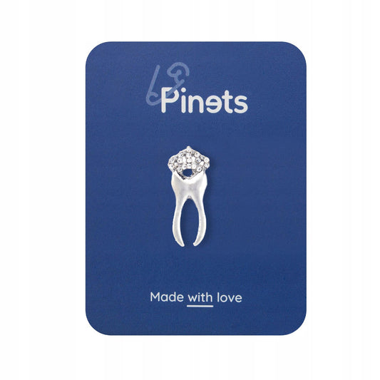 Ząb w koronie srebrna przypinka