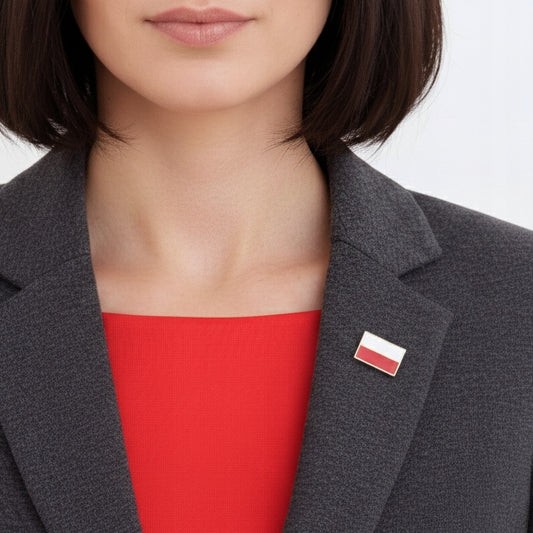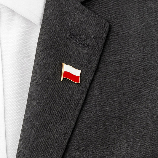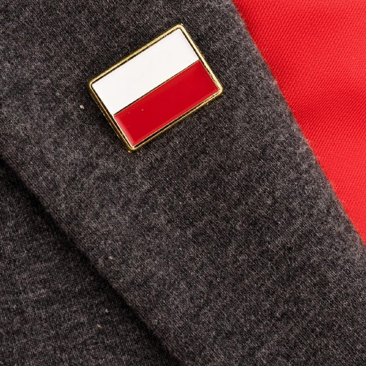 Przypinka flaga Polski powiewająca Pin narodowy biało-czerwony Pinets złota
