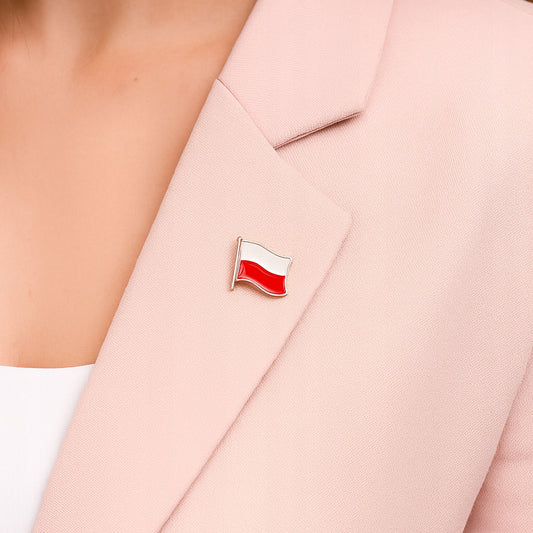 Przypinka flaga Polski powiewająca Pin narodowy Pinets srebrny