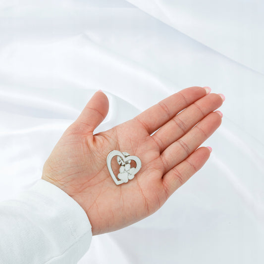 Przypinka serce z łapką srebrna Pinets dla miłośników zwierząt pies kot