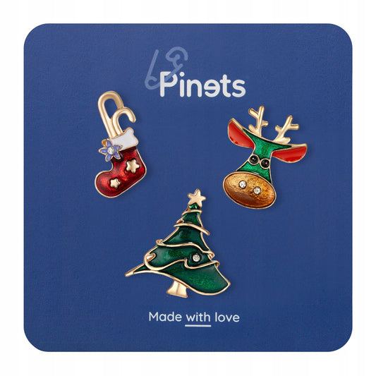 Zestaw 3 przypinki Świąteczne Renifer, Choinka, Skarpeta