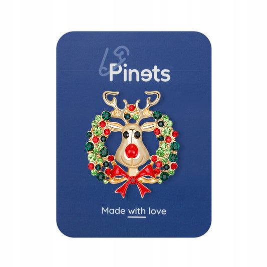 Renifer z wianuszkiem - broszka świąteczna