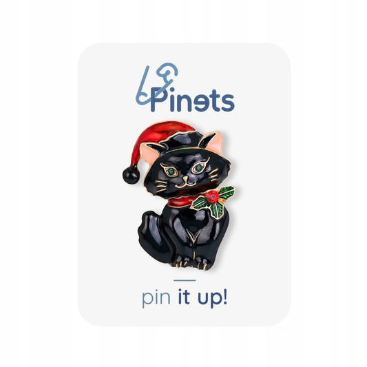 Świąteczny kotek z czapką Świętego Mikołaja - ozdobna broszka na święta