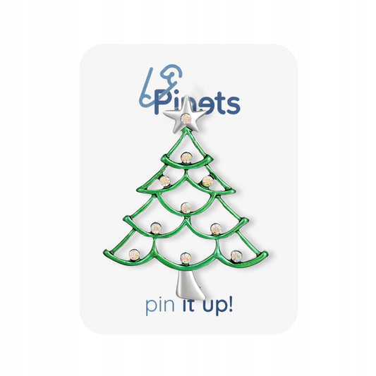 Broszka świąteczna Choinka - zielono-złota, brokatowa - Pinets