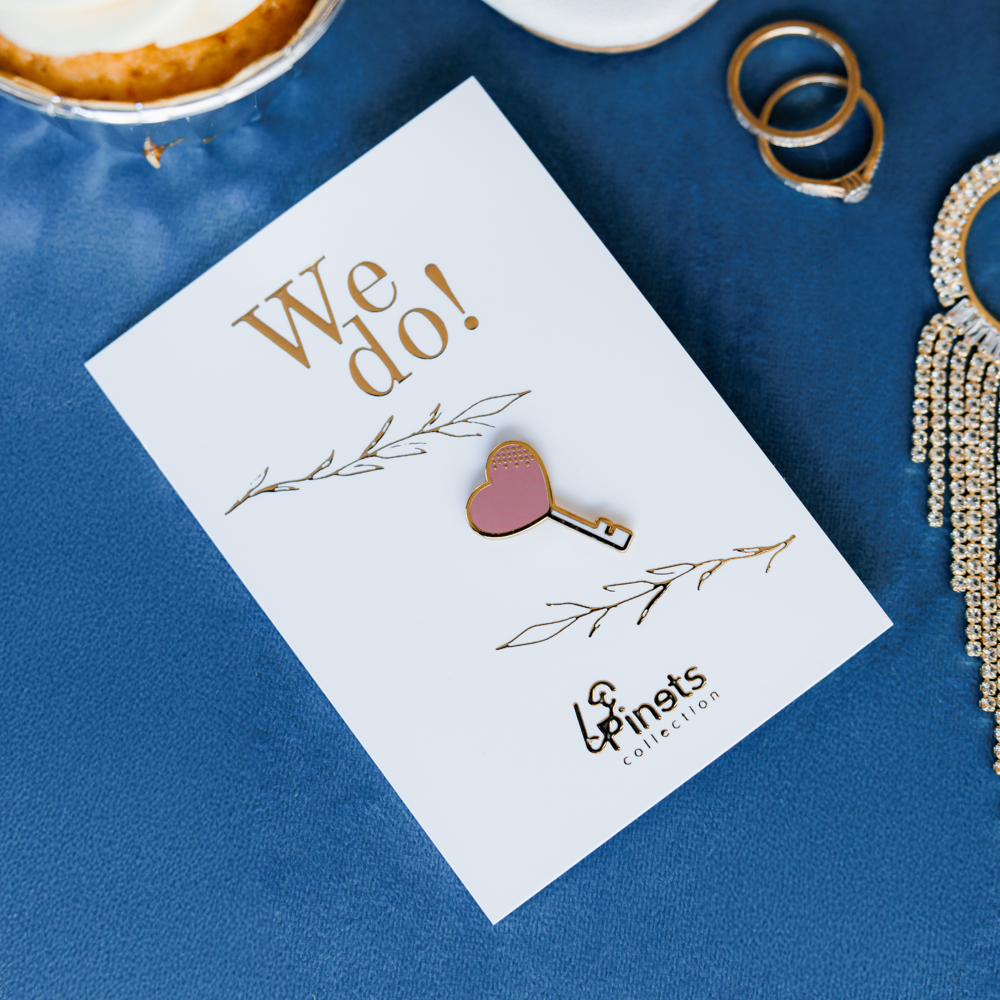 Przypinka ślubna - różowe serce na kluczu - prezent na ślub
