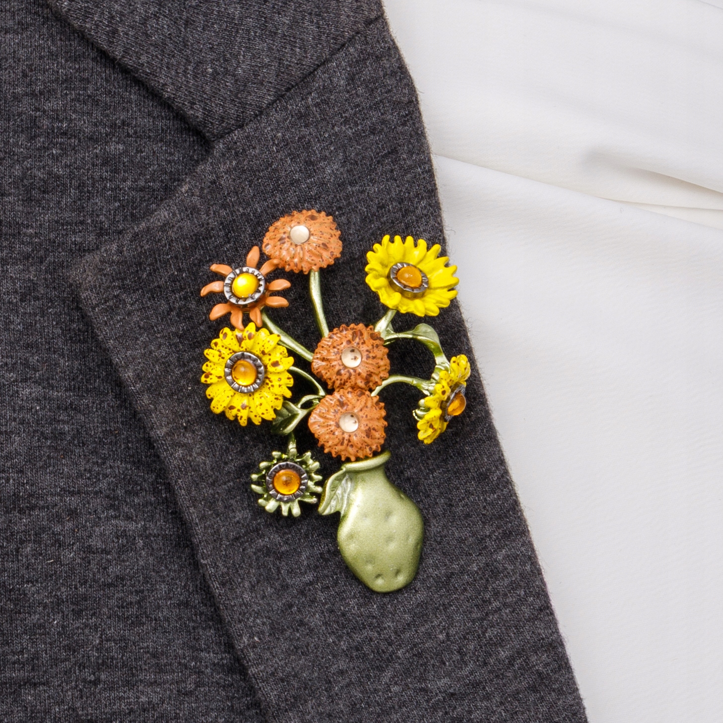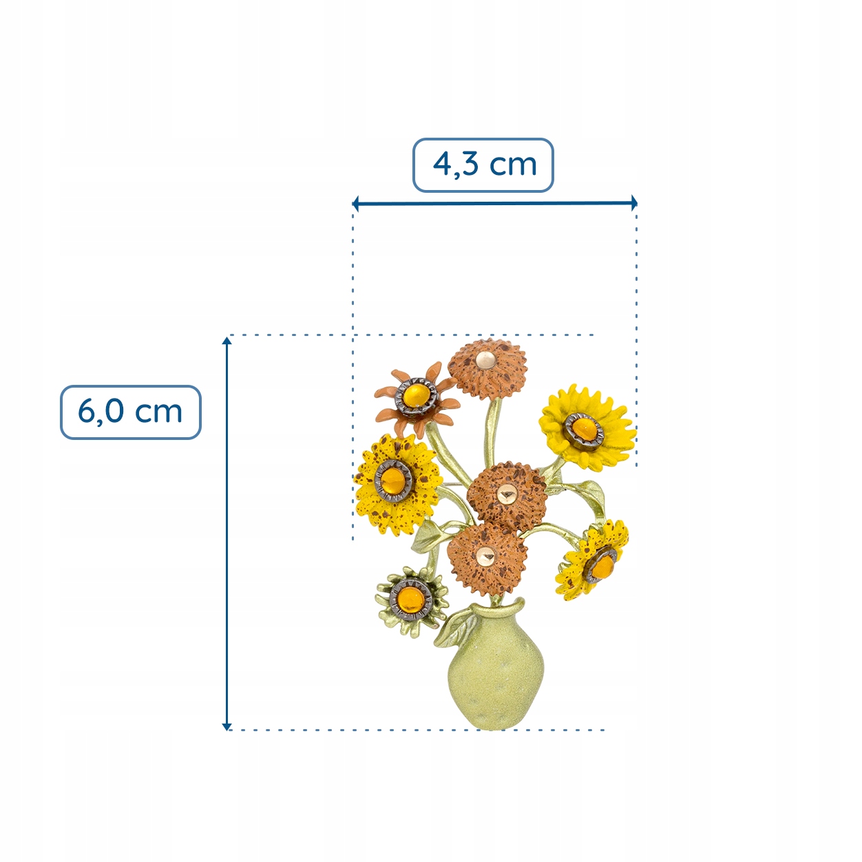 Broszka słoneczniki bukiet kwiatów w wazonie artystyczna vintage