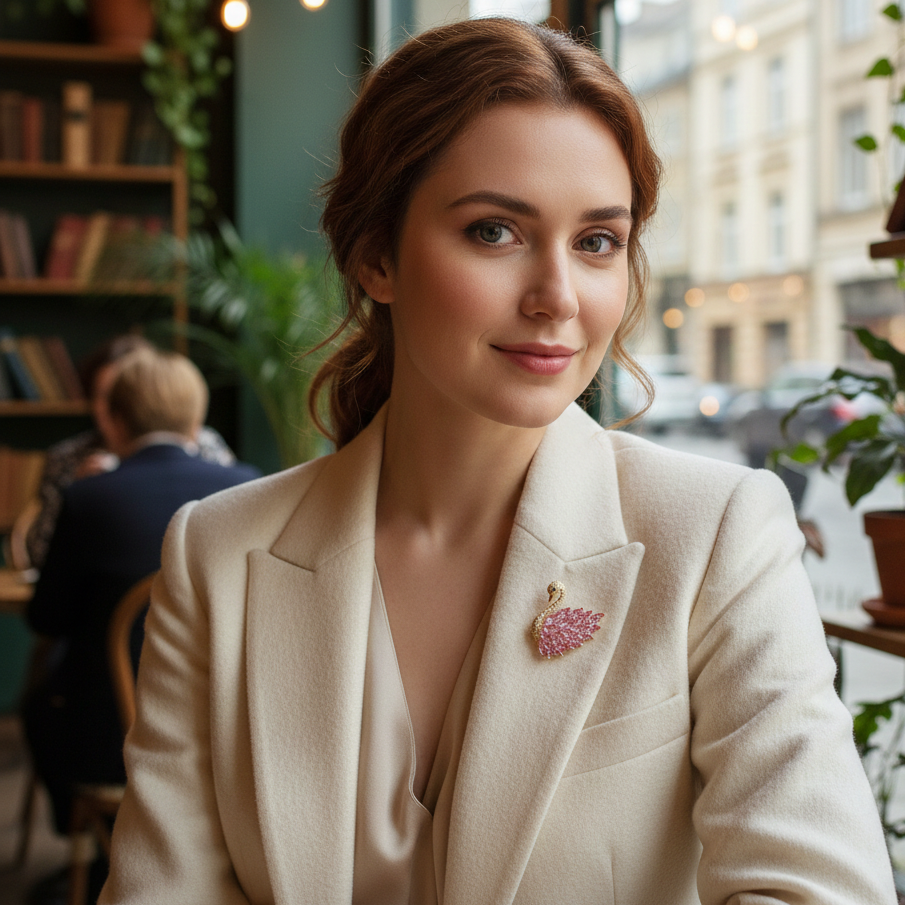 Ozdobna broszka z motywem różowego łabędzia, pozłacana 14-karatowym złotem i ozdobiona cyrkoniami. Posiada zapięcie typu agrafka, które w prosty sposób można przypiąć do każdego rodzaju ubrania czy dodatku. Agrafka trzyma na miejscu broszkę przez cały czas, dzięki czemu nie trzeba się obawiać przypadkowego odczepienia i zgubienia biżuterii. Broszka z różowym łabędziem z kolekcji Animals pozwoli Ci wyróżnić się z tłumu i poczuć się wyjątkowo.