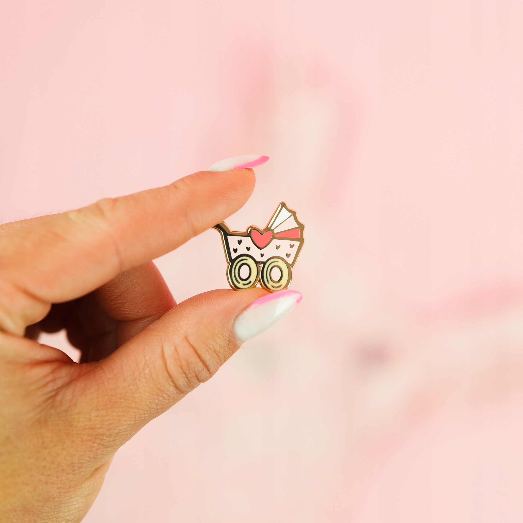 Różowy wózeczek w wersji przypinki to klasyczny symbol narodzin dziewczynki. Stylowa, metalowa przypinka z emalią, która pięknie prezentuje się na ubraniach, torbach czy dodatkach.