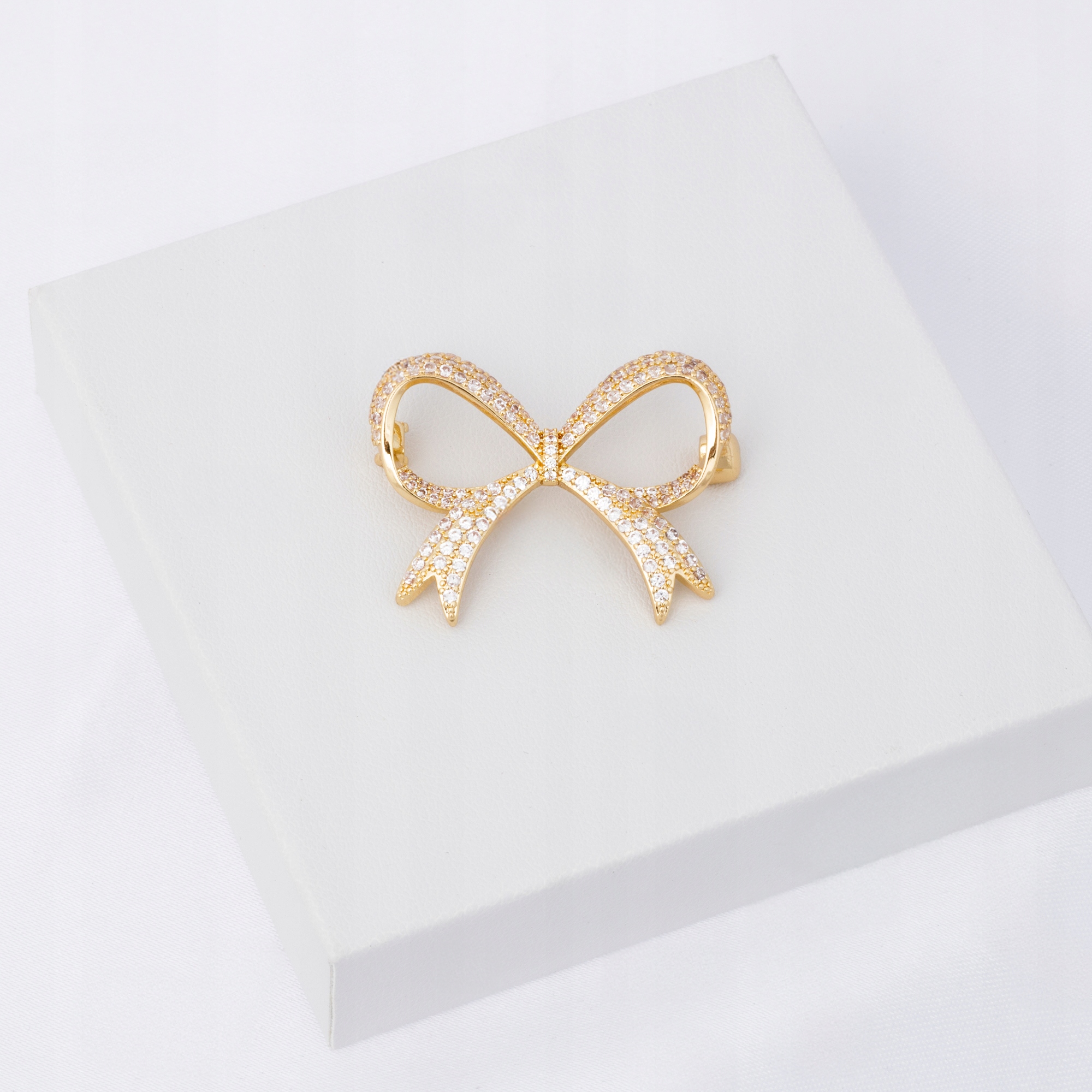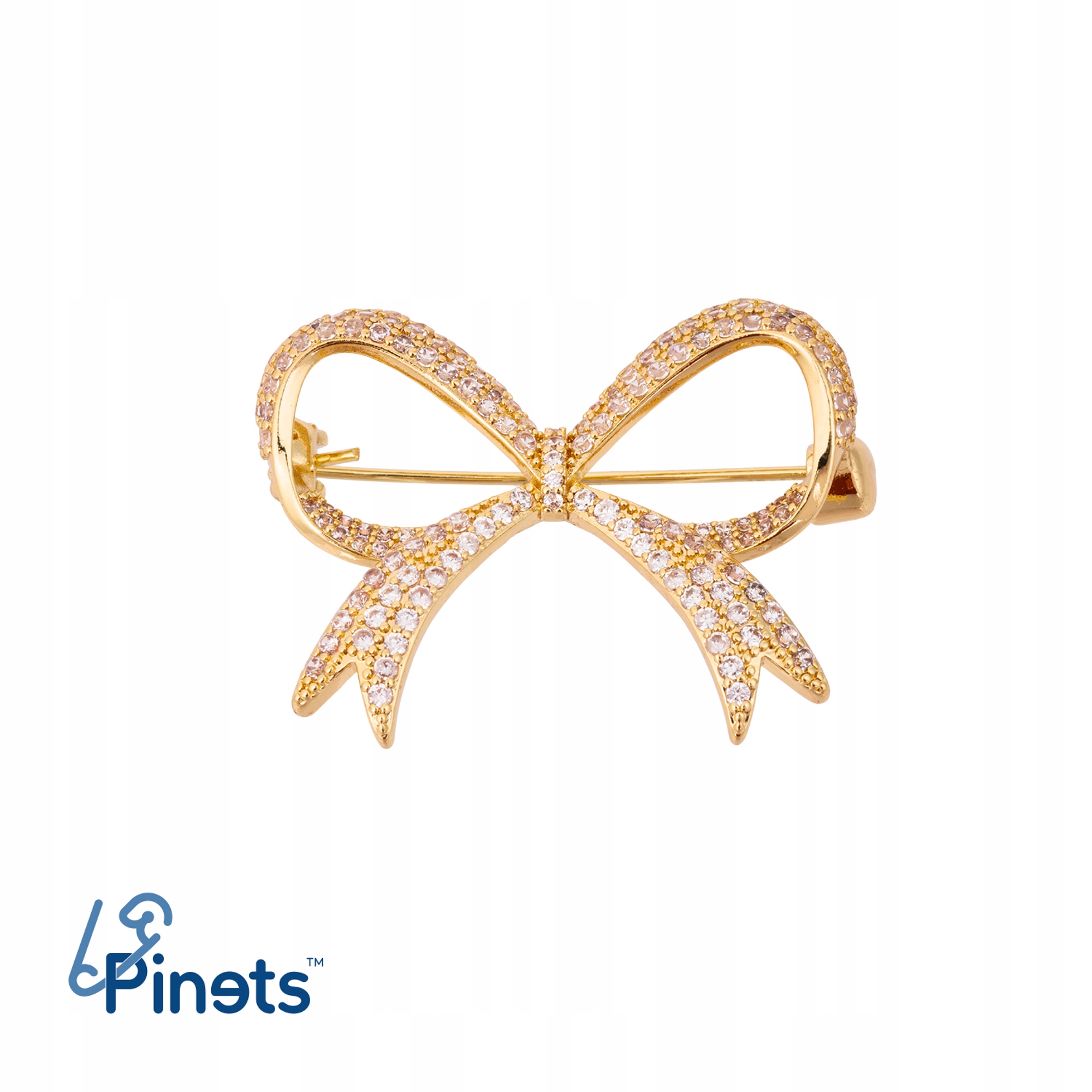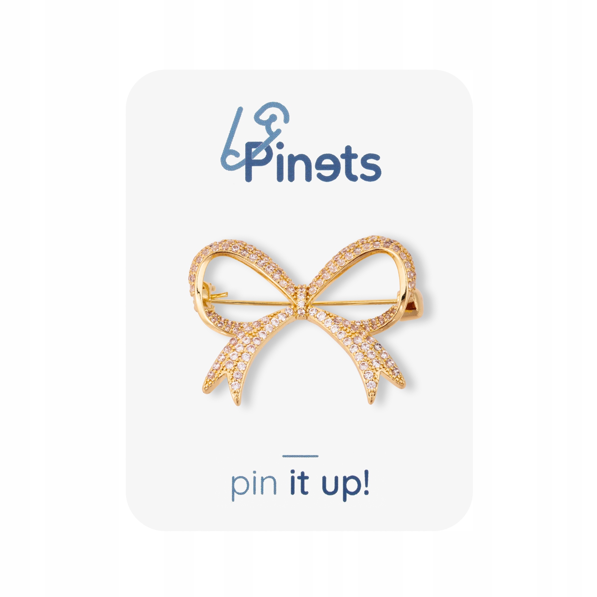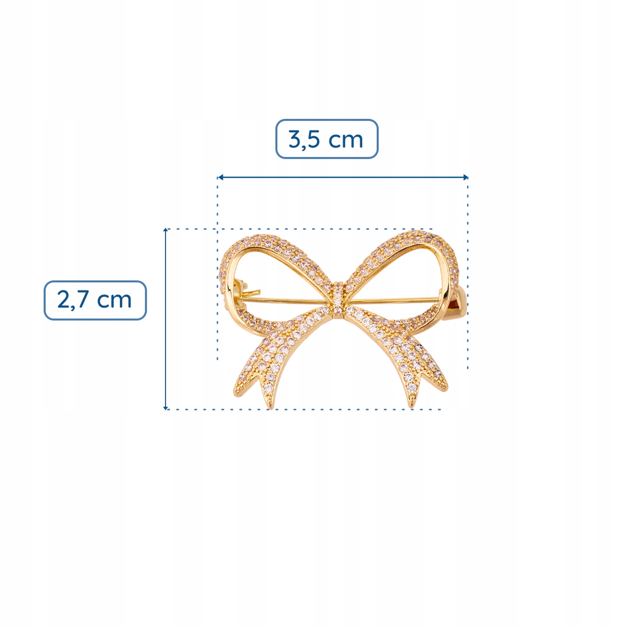 Stylowa pozłacana broszka Pinets Kokarda z cyrkoniami